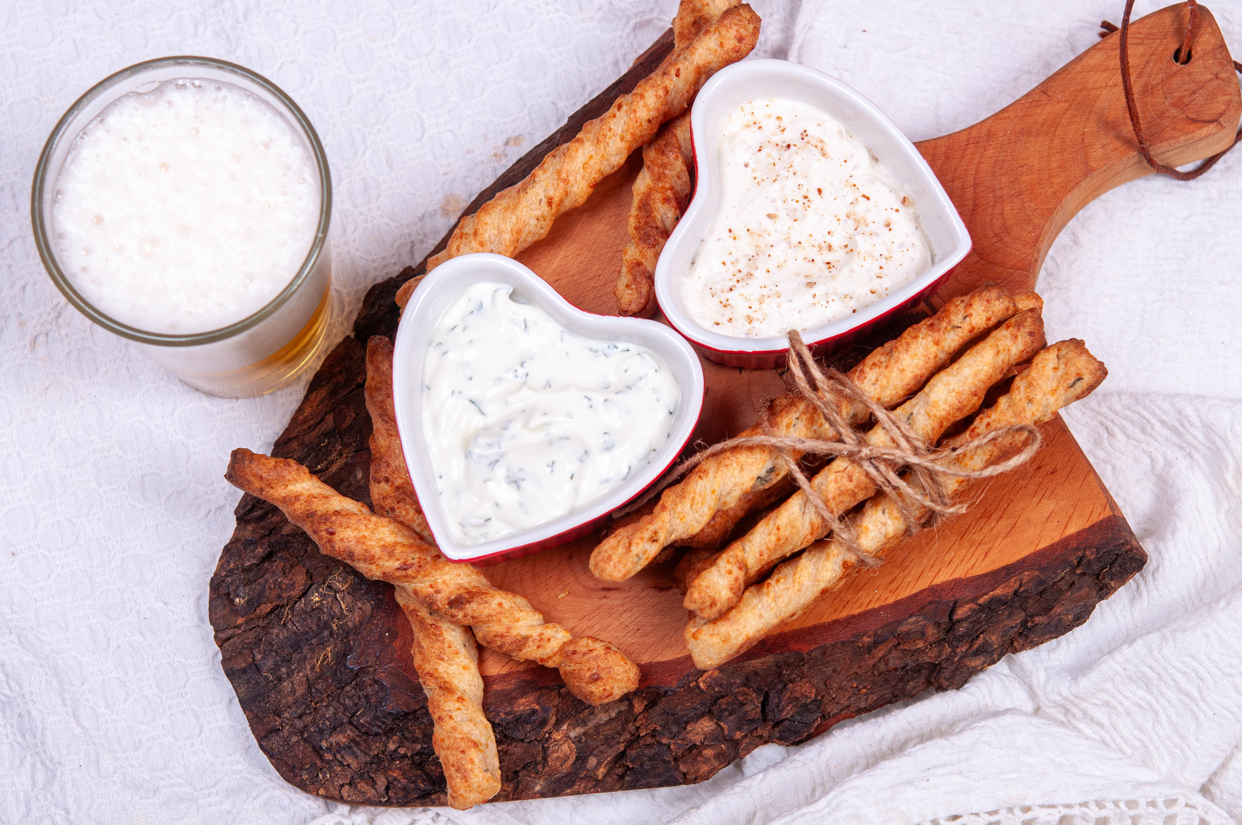 Рецептата за гризини с кашкавал и два вида мус от сирена е изпълнена.