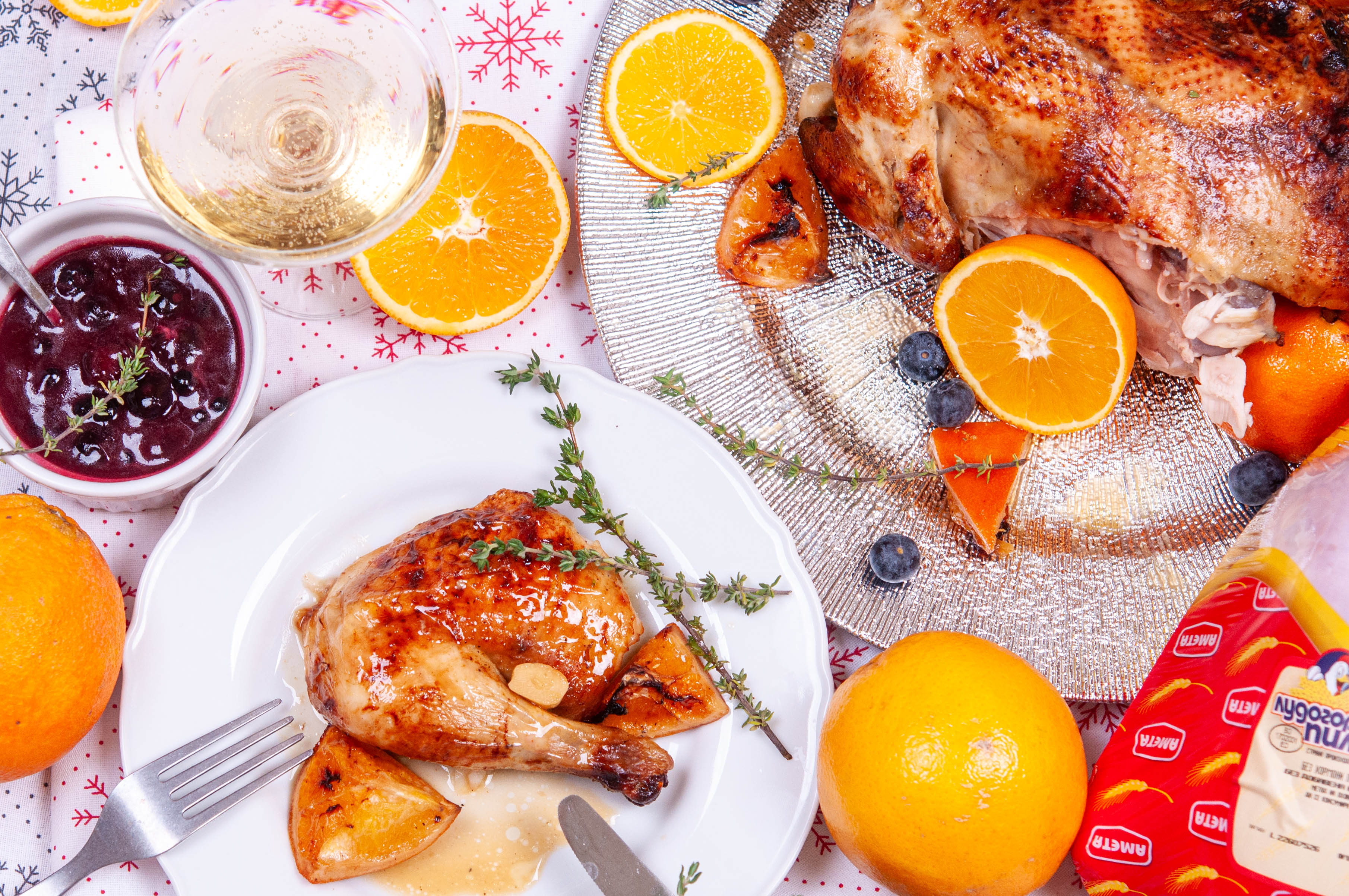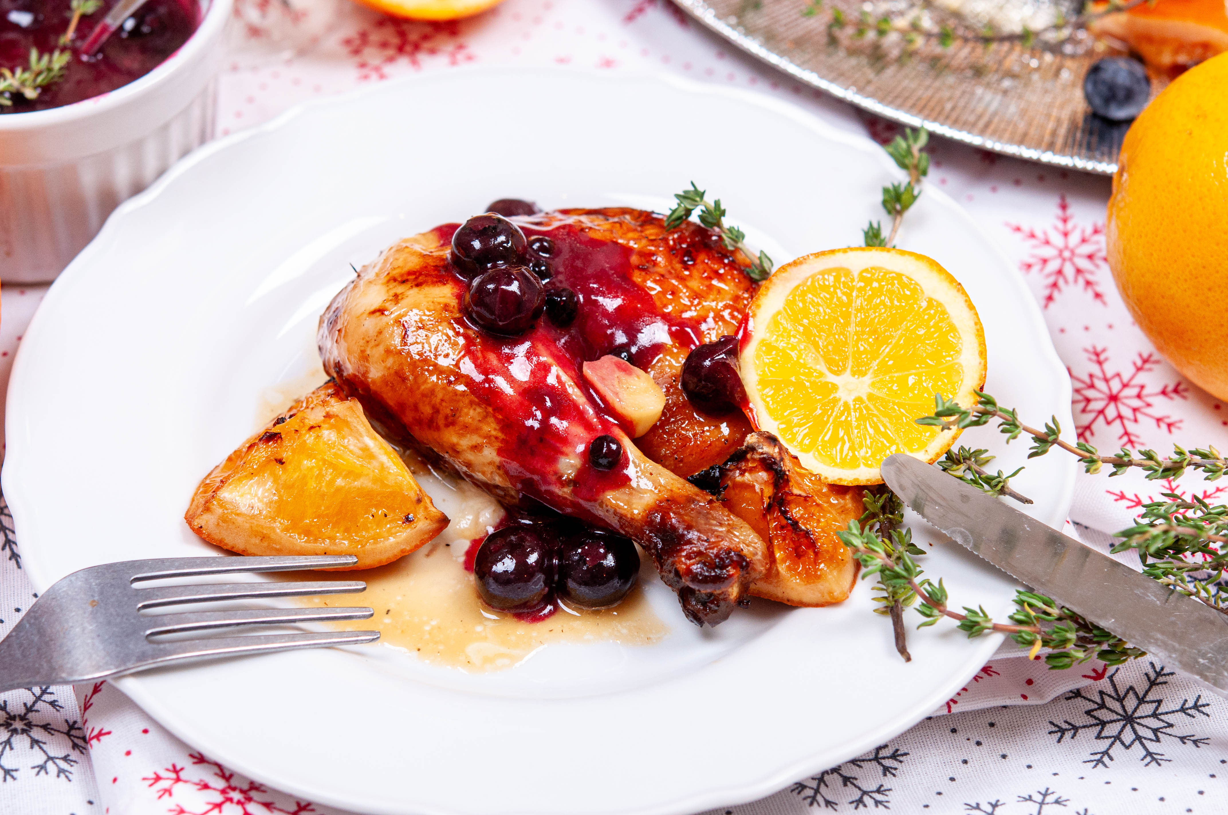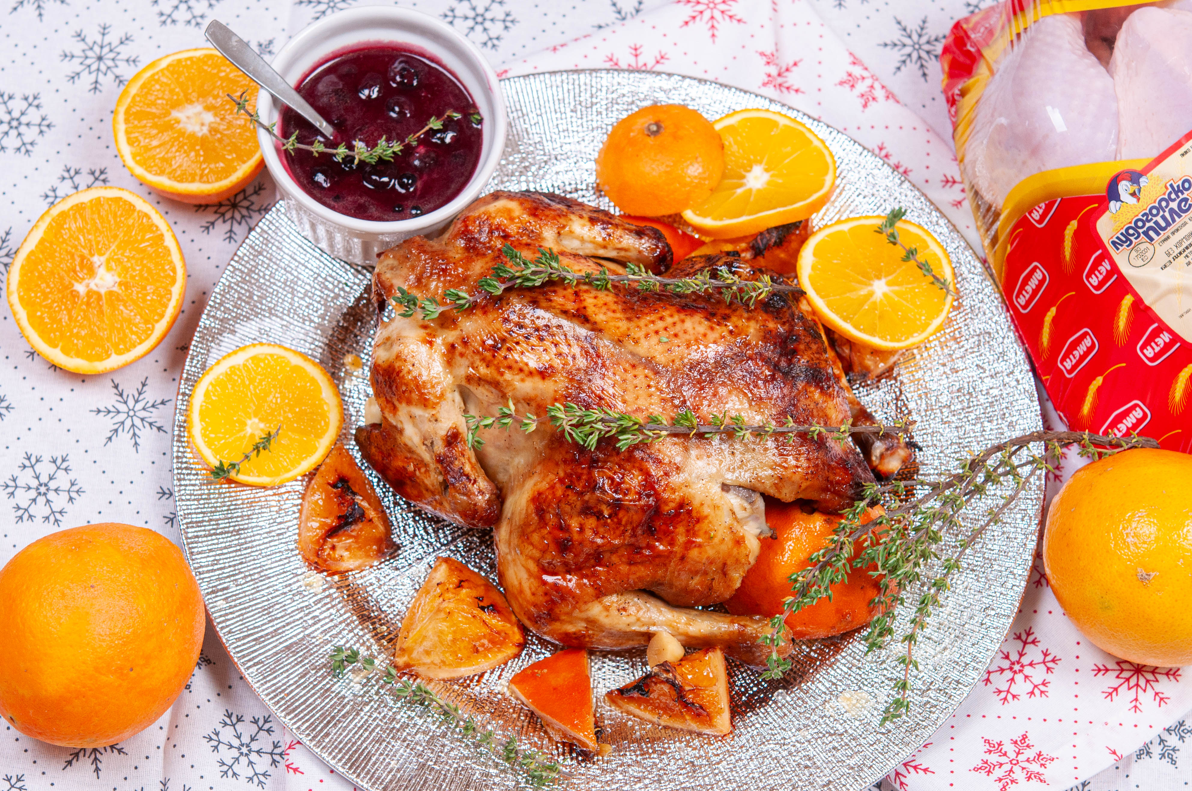Цяло печено пиле с портокали и боровинков сос