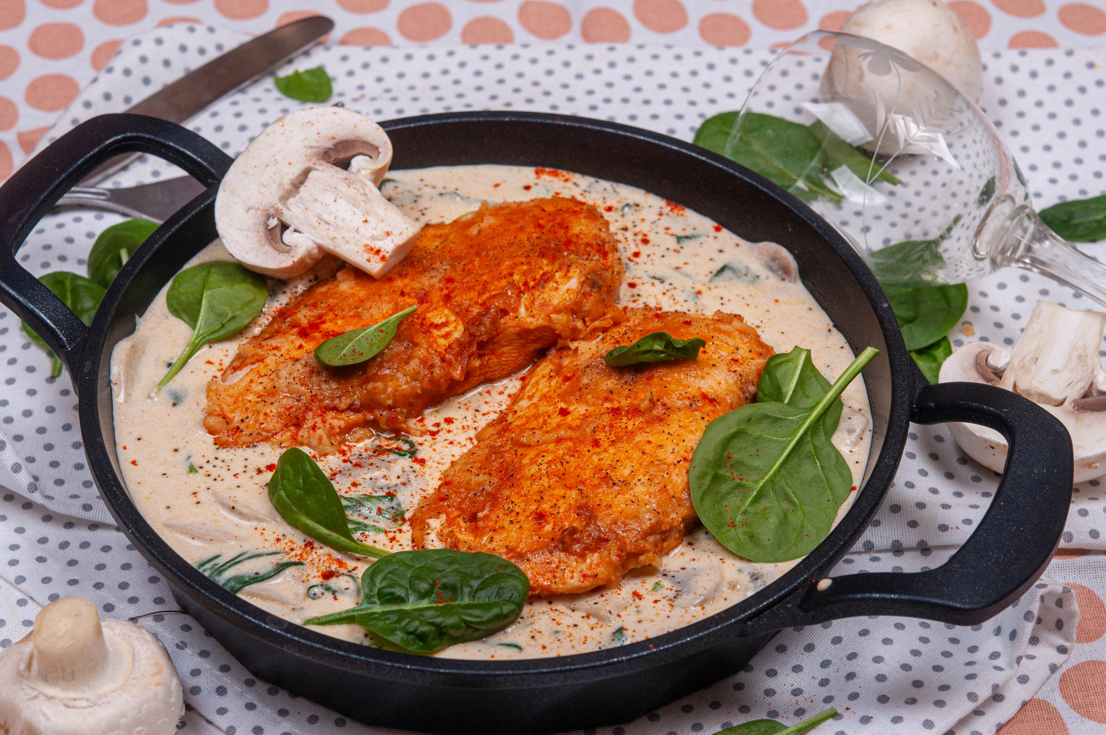 Отново едно страхотно пиле ще спаси вечерята! Буквално за половин час, получаваме богато като вкус, много лесно за приготвяне и изключително ефектно като резултат ястие. Рецептата за пиле с гъби, спанак и сметана на тиган е идеална за моментите, когато искаме да приготвим нещо ефектно за гостите, които сме поканили на вечеря, но също и за дните, когато искаме да разнообразим менюто и да зарадваме смейството с нещо различно. Залагаме винаги на качествено пилешко месо с доказан произход, каквото е пилешкото филе от Лудогорско пиле, за да получим максимално пълноценно и вкусно ястие.