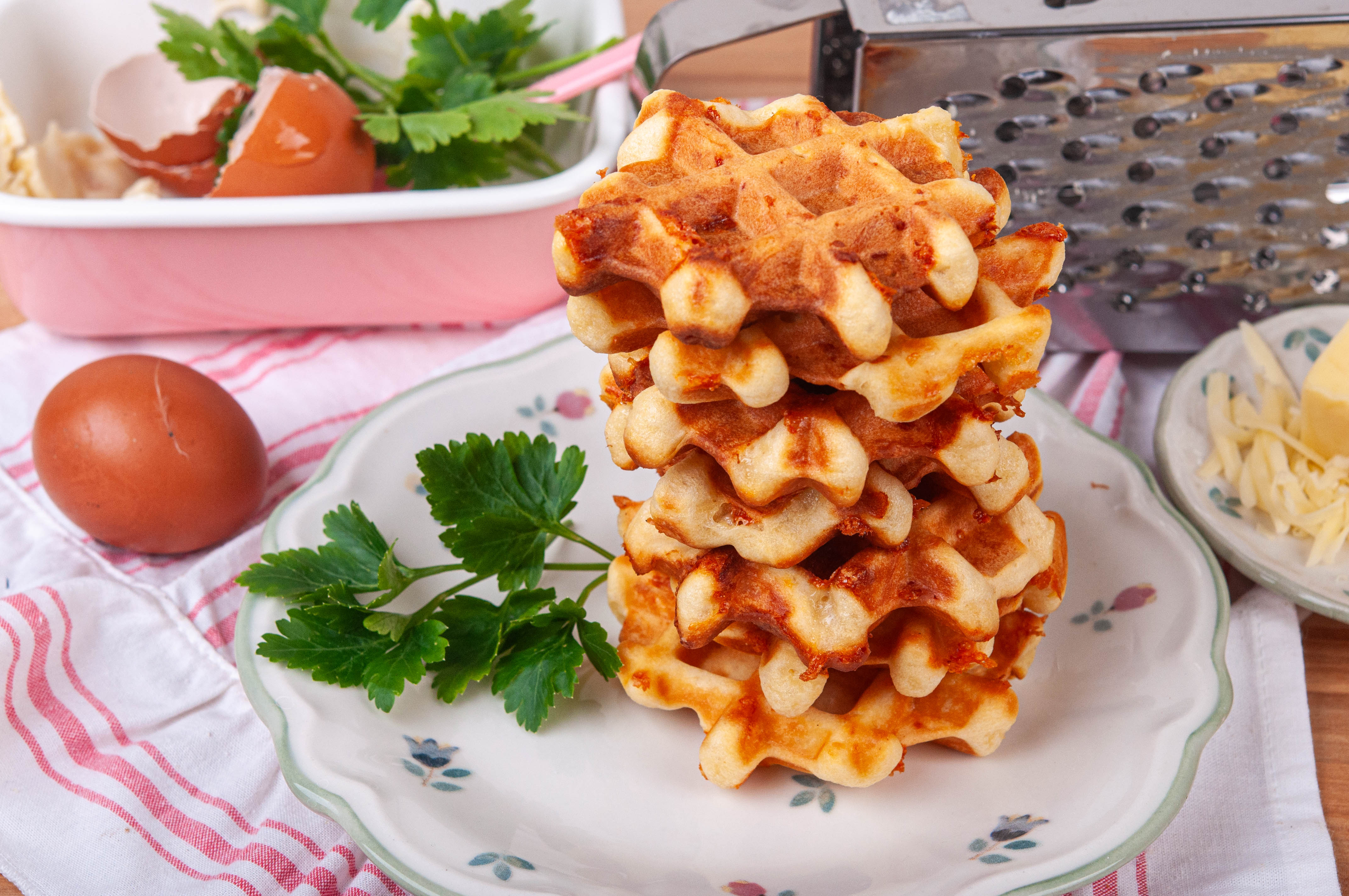 Гофретите са любима закуска! Сладки и солени, като сладките гофрети определено са по-популярни. Това обаче не означава, че солените гофрети са по-малко вкусни! Рецептата за солени гофрети е много лесна и е особено подходяща за списъка с рецепти за брънч, които може да приготвите за нула време вкъщи. Може да ги комбинирате с още сирене, но разбира се може да комбинирате солените гофрети със сирена със свежа салата, шунка, яйце и всичко друго, което имат под ръка и се сетите!