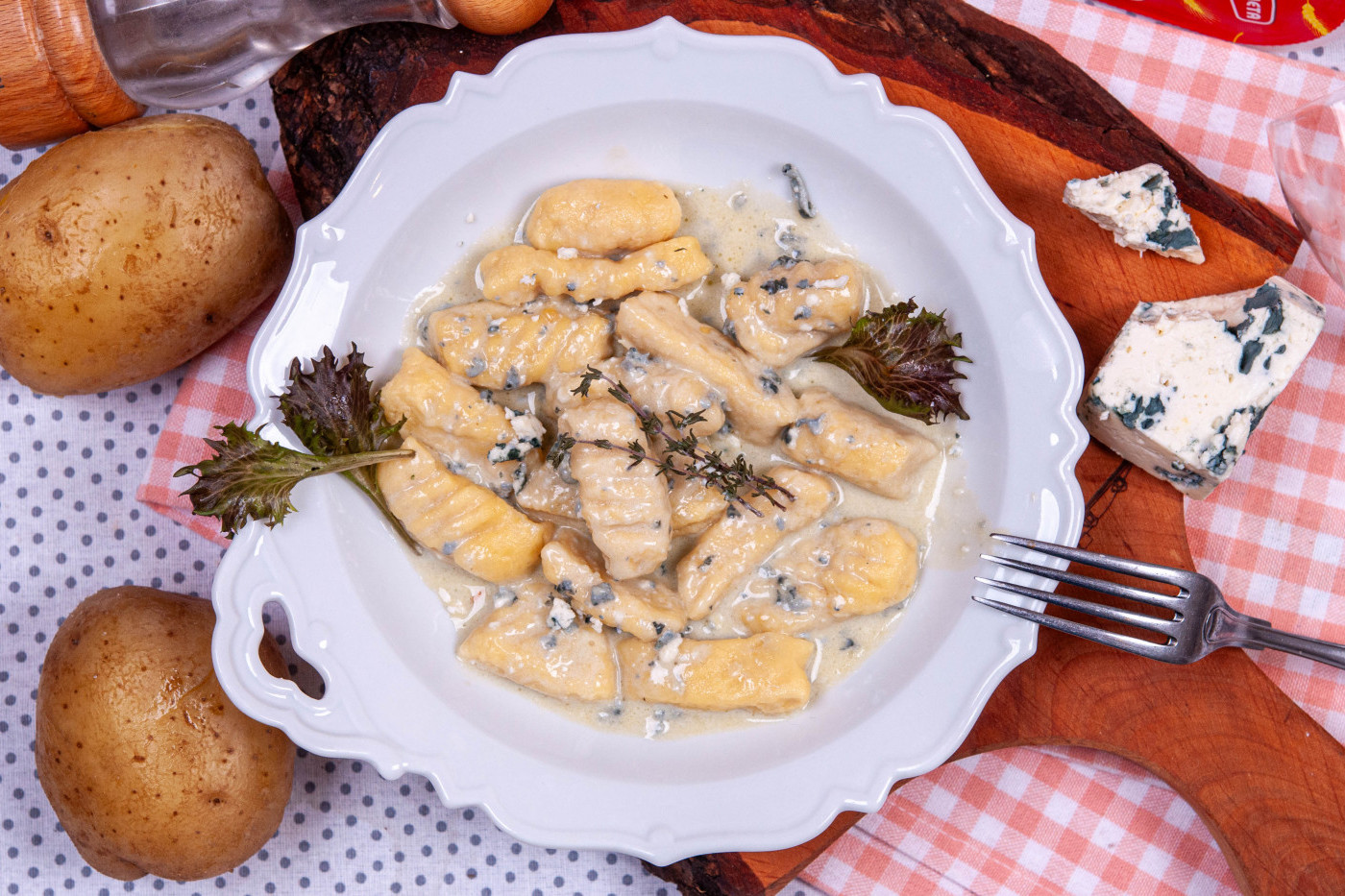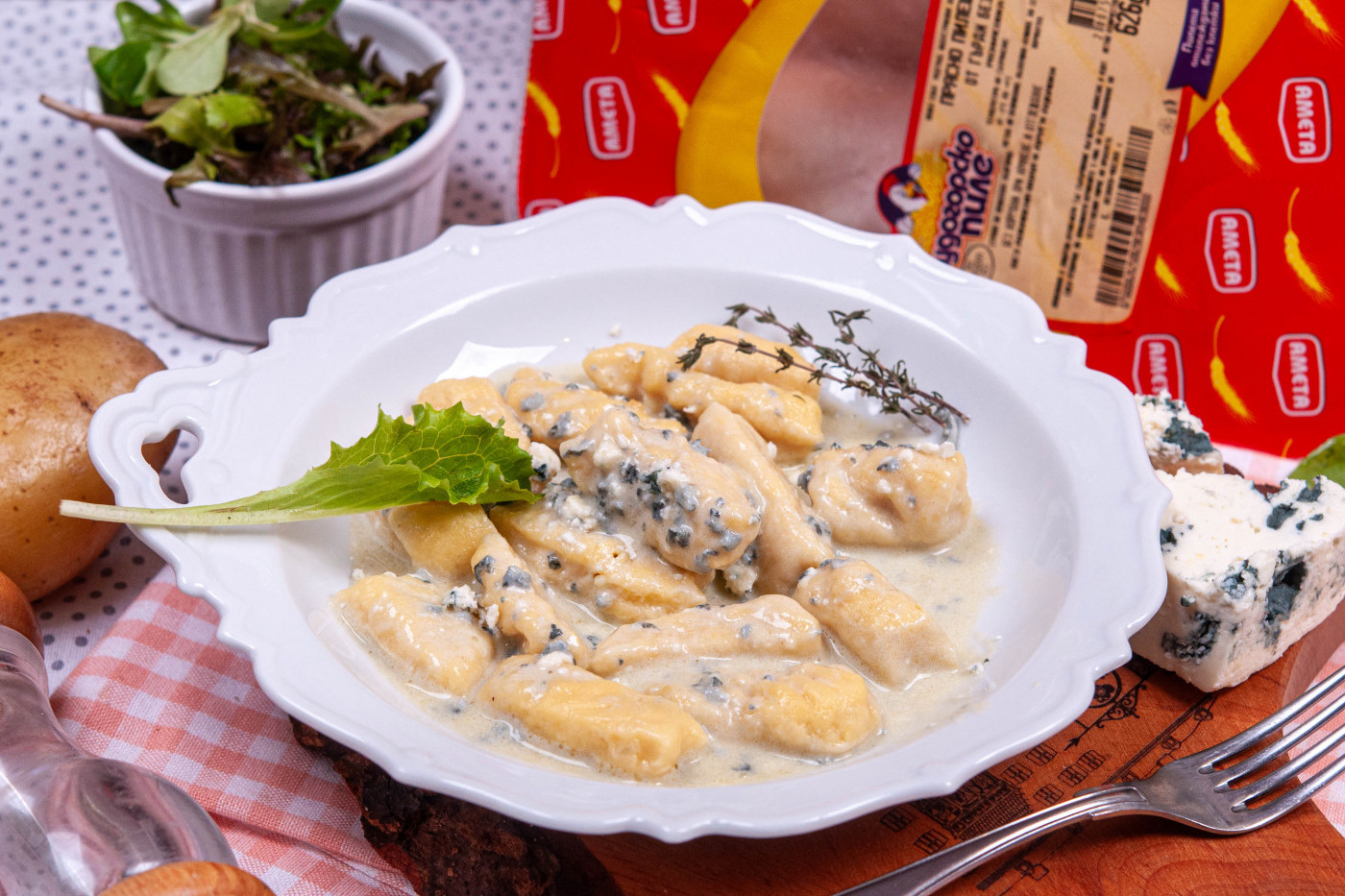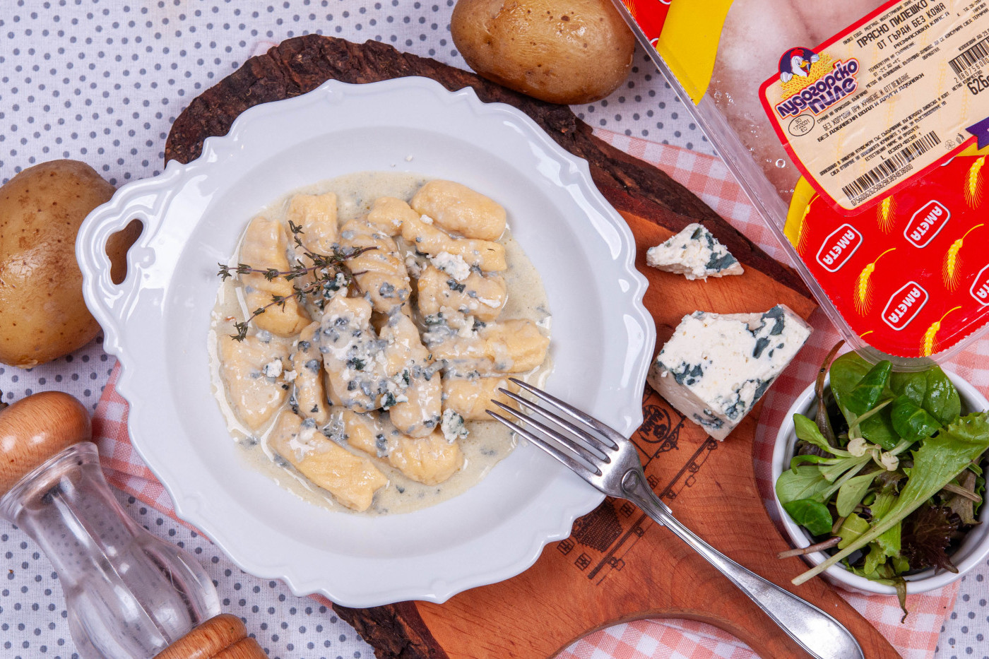 - Първата стъпка от рецептата за ньоки с пилешко и сос със синьо сирене е изборът и подготовката на продуктите. Избирате охладено пилешко филе с доказан произход, като пилешкото на Лудогорско пиле. Смилате го с помощта на блендер до получаване на фина пилешка кайма. Картофите сварявате добре до пълна готовност, обелвате и изчаквате да изстинат напълно.