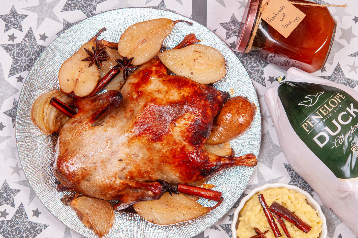 Рецептата за патица с круши, анасон и канела е рецепта, която приготвяме по-скоро на празник, отколкото в делничните дни. Пищна и много интересна, богата и истински различна, рецептата за патица с круши, анасон и канела е изключително подходящо предложение за зимните празници и би била еднакво добре посрещната, както на Коледната трапеза, така и в новогодишното меню. Прекрасните характерни аромати се допълват чудесно и правят ястието празнично. Залагаме на патешко от Пенелопе и приготвяме тази специална рецепта с която да зарадваме както всички вкъщи, така и гостите за празничните дни.