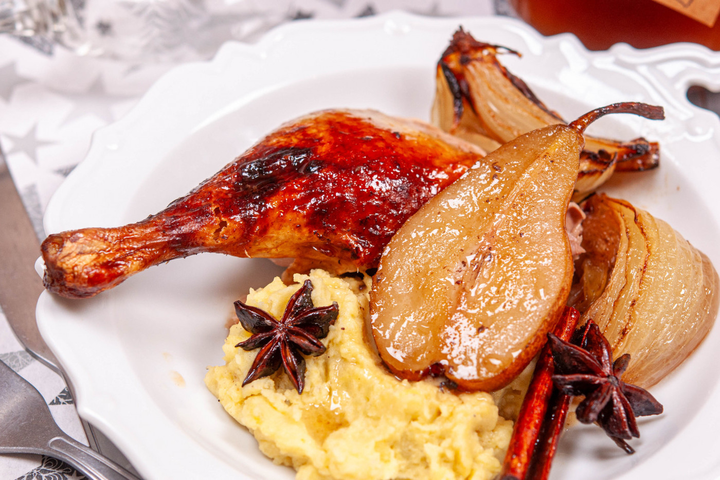 Рецептата за патица с круши, анасон и канела е изпълнена.